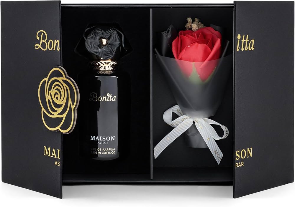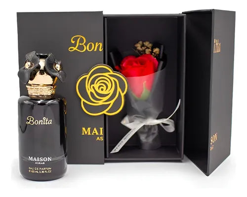 A pirâmide olfativa do perfume Maison Asrar Bonita Eau de Parfum é composta pelas seguintes notas, de acordo com o site oficial da marca e outras fontes: